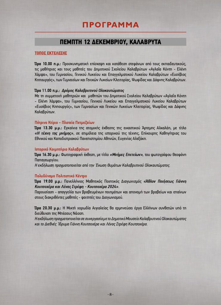 Παγκαλαβρυτινός Σύλλογος Πατρών: Επετειακή Εκδήλωση για την Εθνική Επέτειο της 25ης Μαρτίου 1821 17 Μαρτίου 2026