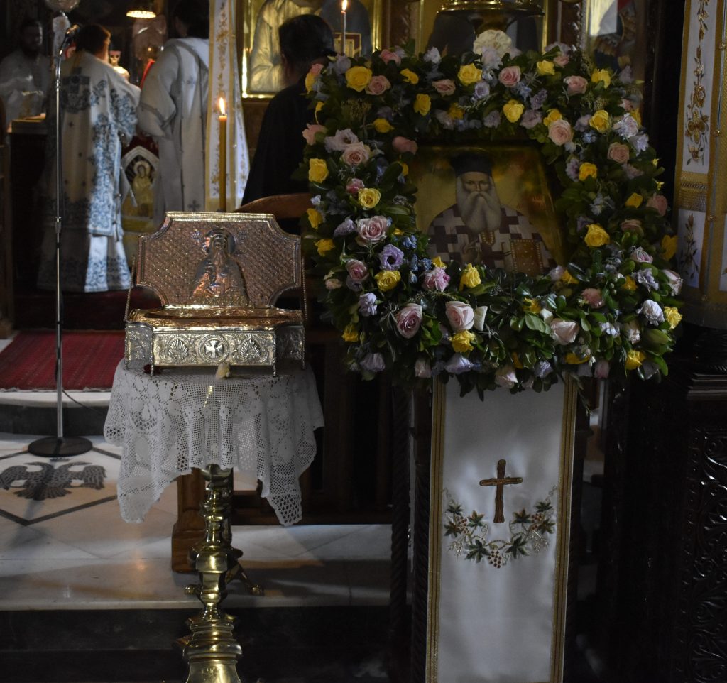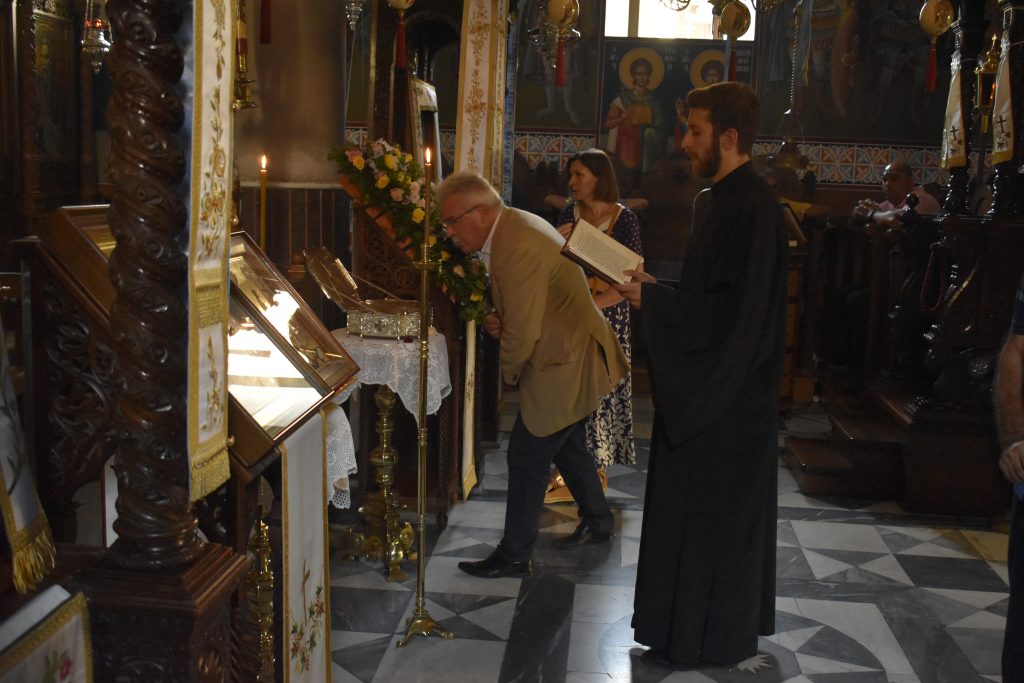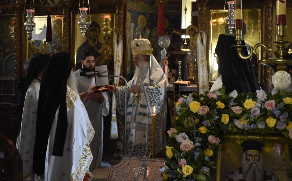 Με το πέρας της Θείας λειτουργίας προς ανάμνηση της ημέρας ο καθηγούμενος της Ιεράς Μονής Αρχιμανδρίτου, κ. Ευσεβίος προσέφερε, εγκόλπιο στον Σεβασμιωτάτο Μητροπολίτη Κηφισίας, Αμαρουσίου, Ωρωπού και Μαραθώνος κ. Κυρίλλο.