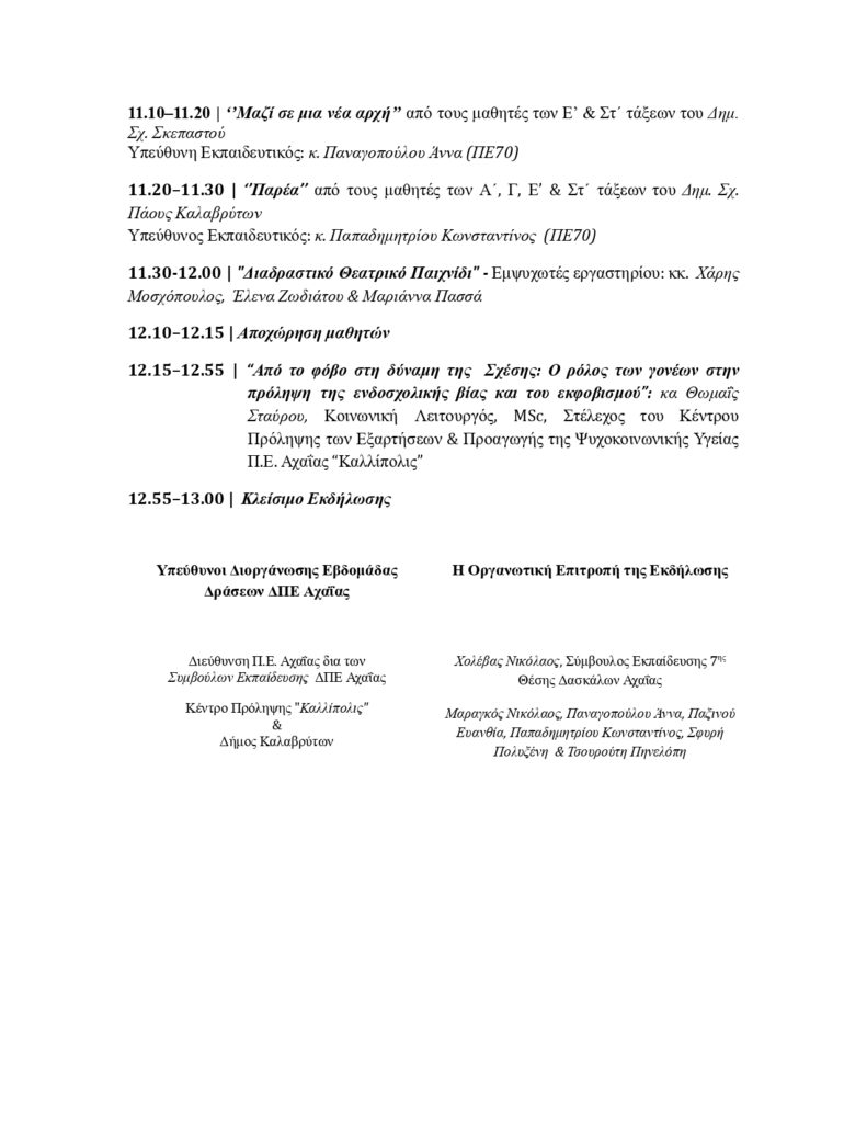 μια πρωτοβουλία της Διεύθυνσης Πρωτοβάθμιας Εκπαίδευσης Αχαΐας σε συνεργασία με το Κέντρο Πρόληψης «Καλλίπολις» και τον Δήμο Καλαβρύτων.