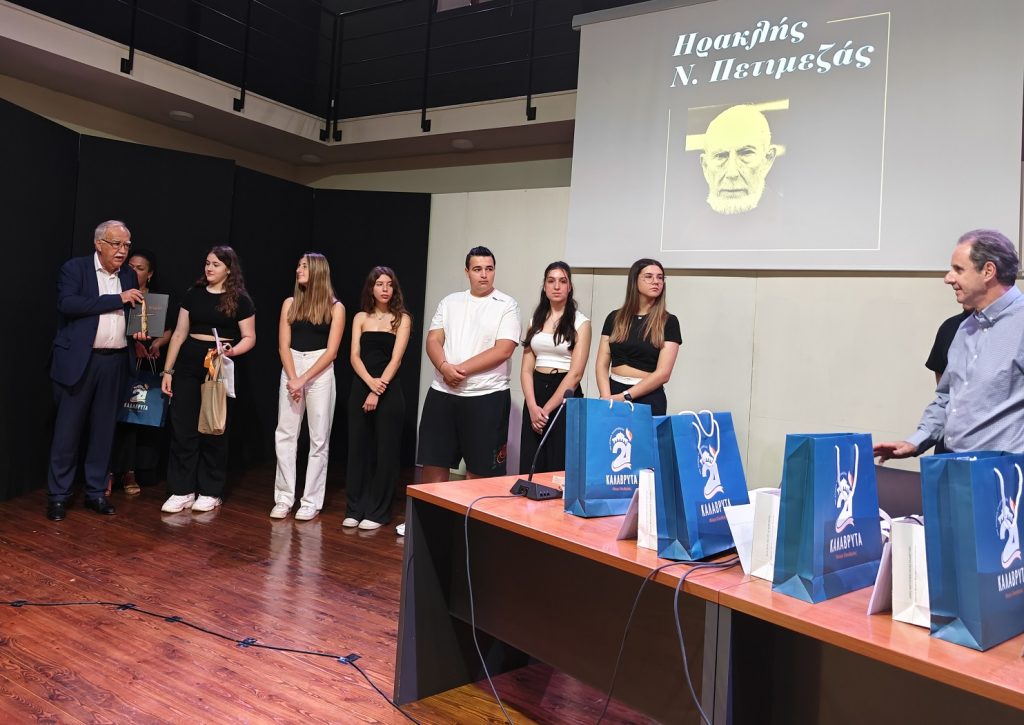 Εν συνεχεία, όπως κάθε χρόνο, βραβεύτηκαν στο πλαίσιο της αφιερωμένης στη μνήμη του Ηρακλή Πετιμεζά εκδήλωσης οι μαθητές που αρίστευσαν κατά τη τελευταία σχολική χρονιά στο Γενικό και Τεχνικό -Επαγγελματικό Λύκειο Καλαβρύτων «Ευσέβιος Κηπουργός».