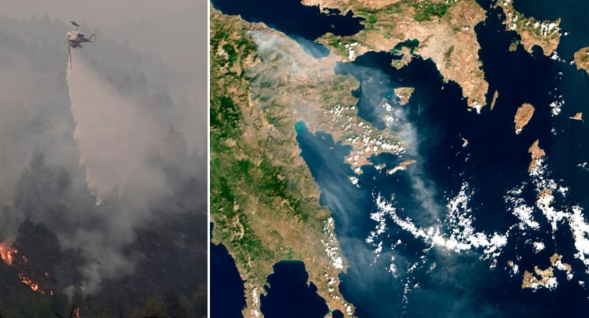 Home»Δυτική Ελλάδα»Δορυφόρος καταγράφει την έκταση της φωτιάς στο Ξυλόκαστρο-Έως που έφτασαν οι καπνοί