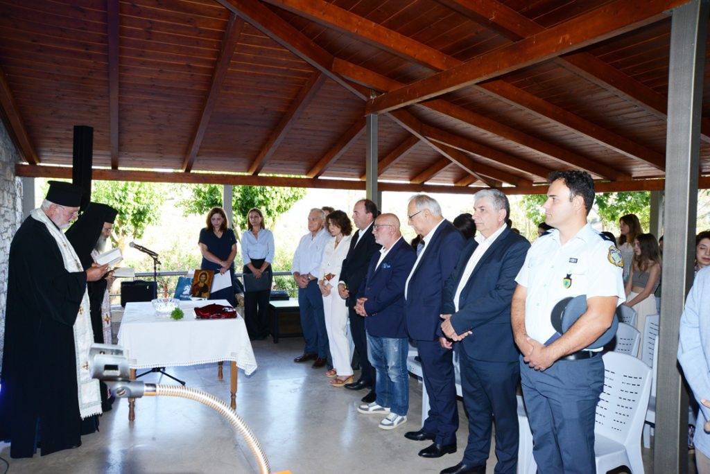 Η εκδήλωση των εγκαινίων ξεκίνησε με Αγιασμό απ’ τον Πρωτοσύγκελο Πανοσιολογιότατο Αρχιμανδρίτη της Ιεράς Μητροπόλεως Καλαβρύτων και Αιγιάλειας π. Ιωακείμ Βενιανάκη.
