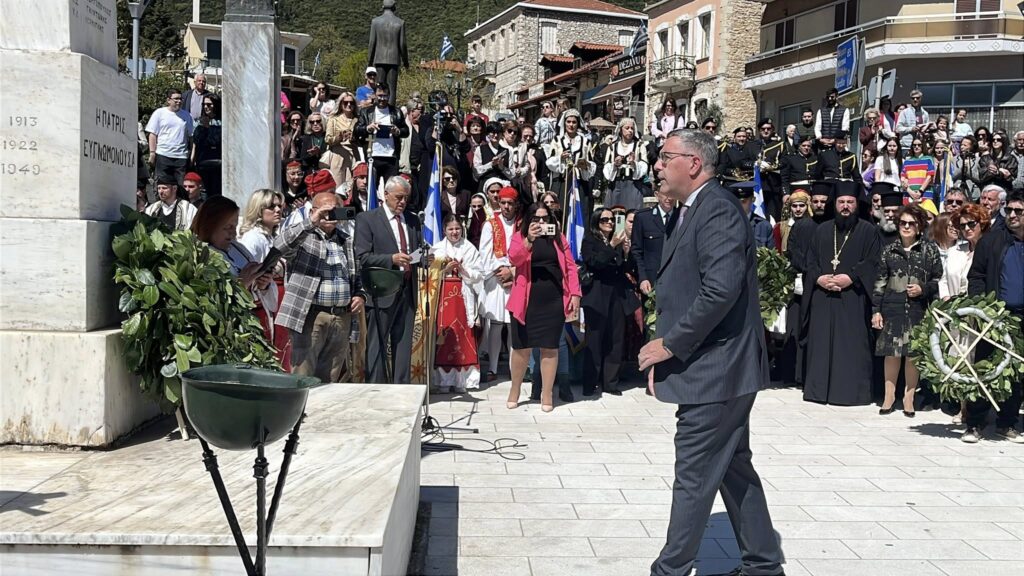Ακολούθησε επιμνημόσυνη δέηση, κατάθεση στεφάνων και τηρήθηκε ενός λεπτού σιγή στη μνήμη των πεσόντων.