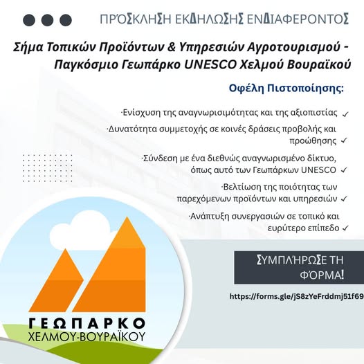Το σήμα πιστοποίησης του Παγκόσμιου Γεωπάρκου UNESCO Χελμού Βουραϊκού για Τοπικά Προϊόντα και Υπηρεσίες Αγροτουρισμού είναι εδώ!