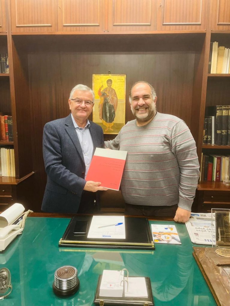 Στο τέλος της συνάντησης ο Πρόεδρος του Εμπορικού Συλλόγου κ. Γιώργος Βαγενάς δώρισε ένα Λεύκωμα με την ιστορία του Εμπορικού και Εισαγωγικού Συλλόγου στον κ. Αντώνη Κουνάβη.