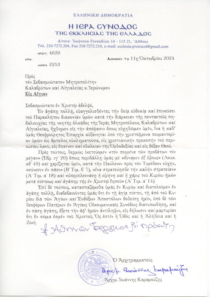 ΠΑΣΧΑΛΙΟΣ ΠΟΙΜΑΝΤΟΡΙΚΗ ΕΓΚΥΚΛΙΟΣ ΤΟΥ ΣΕΒΑΣΜΙΩΤΑΤΟΥ ΜΗΤΡΟΠΟΛΙΤΟΥ ΚΑΛΑΒΡΥΤΩΝ ΚΑΙ ΑΙΓΙΑΛΕΙΑΣ κ. ΙΕΡΩΝΥΜΟΥ8 Απριλίου 2026