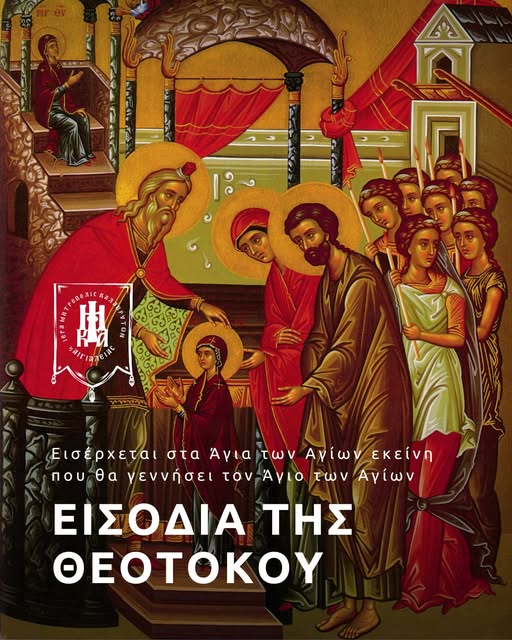 Η εορτή των Εισοδίων της Υπεραγίας Θεοτόκου αποτελεί μία εκ των θεολογικώς σπουδαιοτέρων στιγμών του λειτουργικού έτους. Η τριετίζουσα Παρθένος Μαρία εισέρχεται στον Ναό του Θεού, προετοιμαζόμενη επί σειρά ετών, ώστε να εισέλθει στον κόσμο ο Θεάνθρωπος Ιησούς Χριστός.