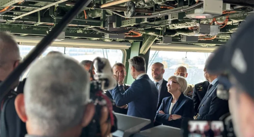 Η επίσκεψη Μητσοτάκη – Μακρόν στη φρεγάτα «Κίμων» στον Πειραιά
