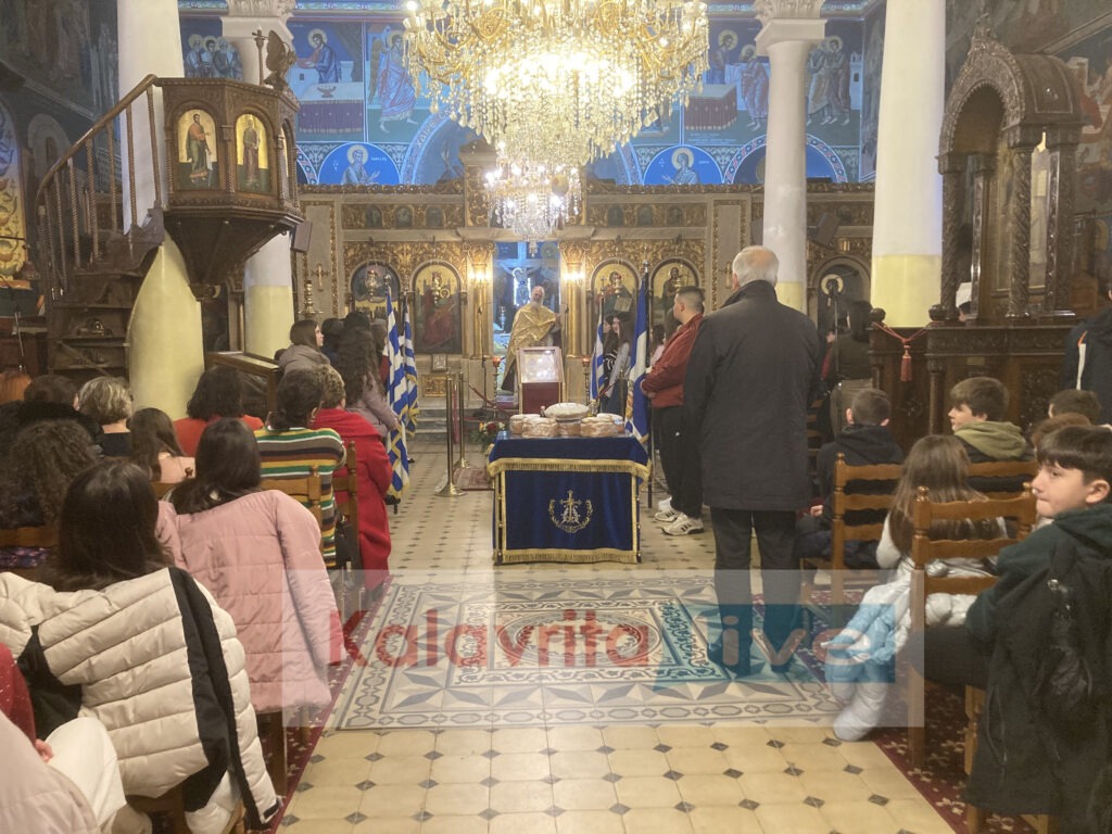 Την Παρασκευή 30 Ιανουαρίου, στον Μητροπολιτικό Ιερό ναό Κοιμήσεως της Θεοτόκου Καλαβρύτων,  πραγματοποιήθηκε ο καθιερωμένος εκκλησιασμός μετά αρτοκλασίας, για την εορτή των Τριών Ιεραρχών. Τα σχολεία μας  εκπροσωπήθηκαν από τους σημαιοφόρους και τους παραστάτες και το σύνολο των μαθητριών και μαθητριών.