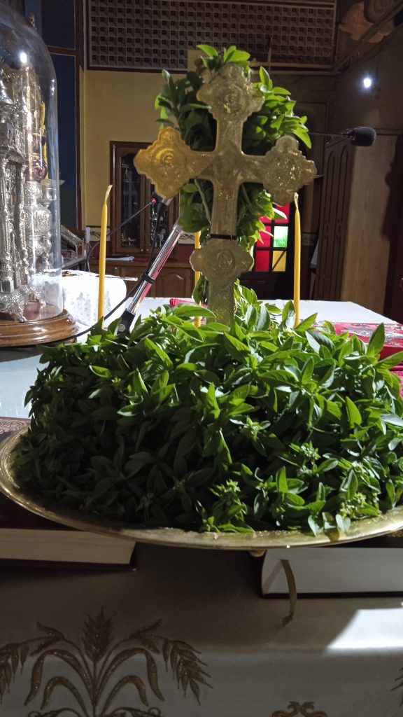 Την ημέρα του εορτασμού της υψώσεως του Σταυρού, 14 Σεπτεμβρίου συνηθίζεται να μοιράζεται βασιλικός γιατί η Αγία Ελένη βρήκε το Σταυρό του Κυρίου σε ένα χώρο που ήταν κατάφυτος από βασιλικούς και για το λόγο αυτό ο ιερέας μοιράζει στους πιστούς κλαδάκια βασιλικού.