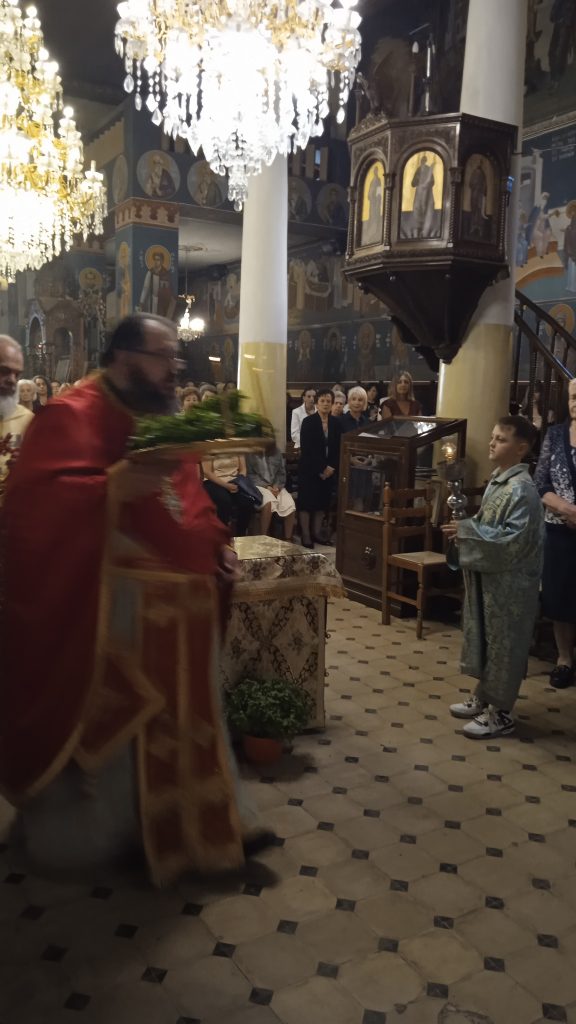 Την Θεία λειτουργία τέλεσε ο Γενικός Αρχιερατικός Καλαβρύτων πρωτοπρεσβύτερος πατήρ Κωνσταντίνος Μητρόπουλος και ο πρωτοπρεσβύτερος πατήρ Δημήτριος Τσελεπής εφημέριοι του Ιερού Ναού.