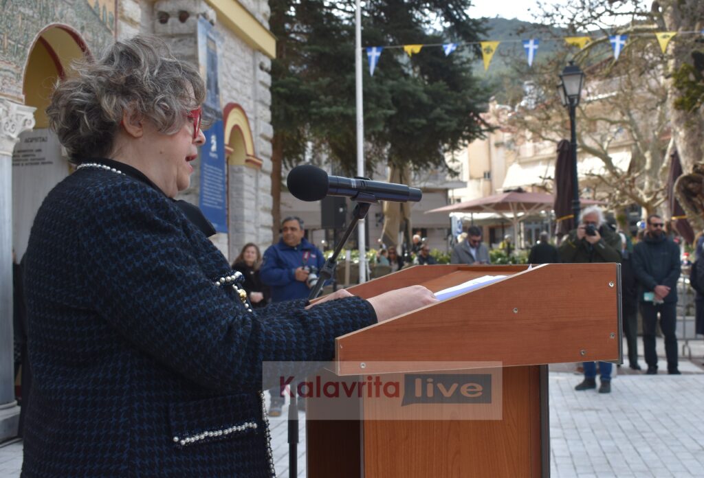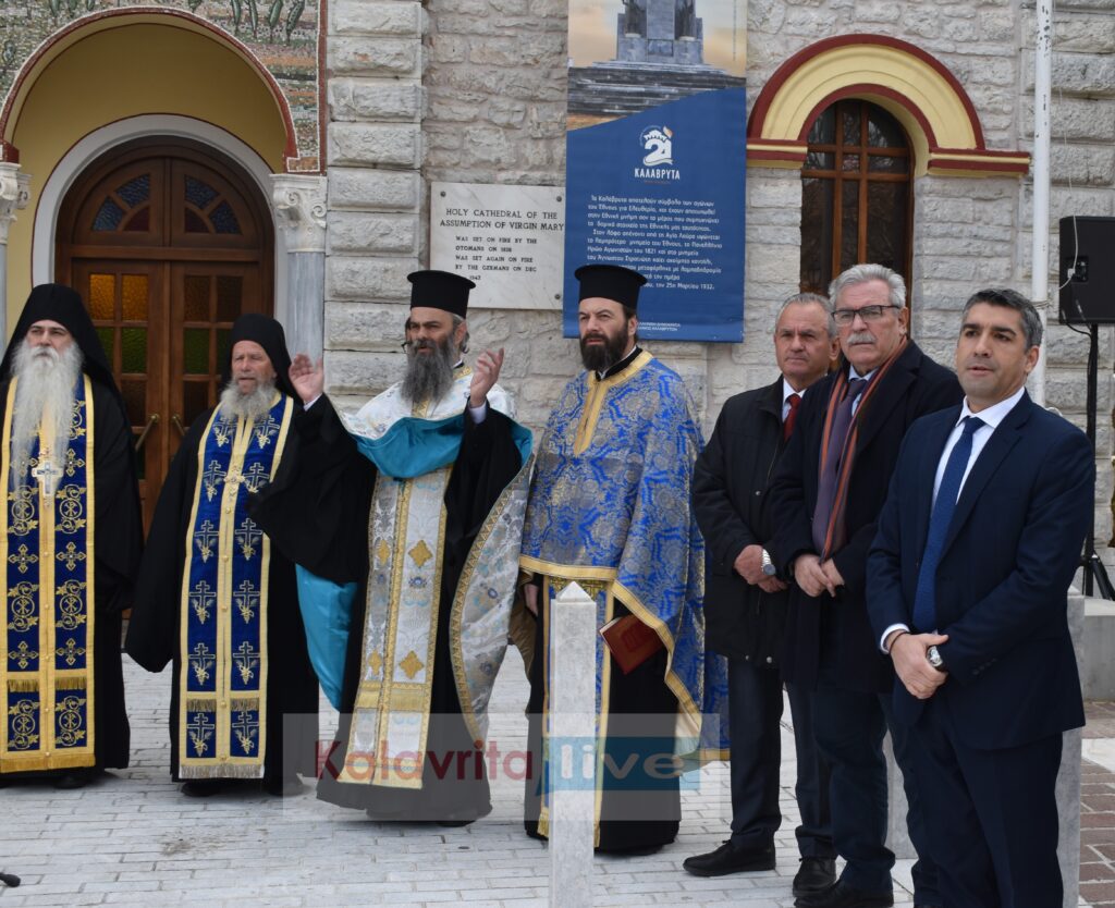 Η επίσημη δοξολογία έγινε στον προαύλιο χώρο του Μητροπολιτικού Ιερού Κοιμήσεως της Θεοτόκου Καλαβρύτων, χοροστατούντος του Σεβασμιωτάτου Μητροπολίτη Καλαβρύτων κ.κ. Ιερωνύμου και του Μητροπολίτη Κοζάνης κ.κ. Παύλου, ενώ τον πανηγυρικό της ημέρας εκφώνησε η Δρ. Πολιτικής Επιστήμης του Πανεπιστημίου Ζυρίχης, Ελένη Κατραμάδου.