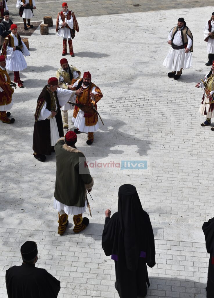 Τιμήθηκε σήμερα με εκδηλώσεις πού έγιναν η απελευθέρωση των Καλαβρύτων, η πρώτη ελεύθερη πόλη στην Ελλάδα, από τον τουρκικό ζυγό Η θεατρική ομάδα Πάνος Μίχος διοργάνωσε την ορκωμοσία των αγωνιστών και την απελευθέρωση της πόλης των Καλαβρύτων.