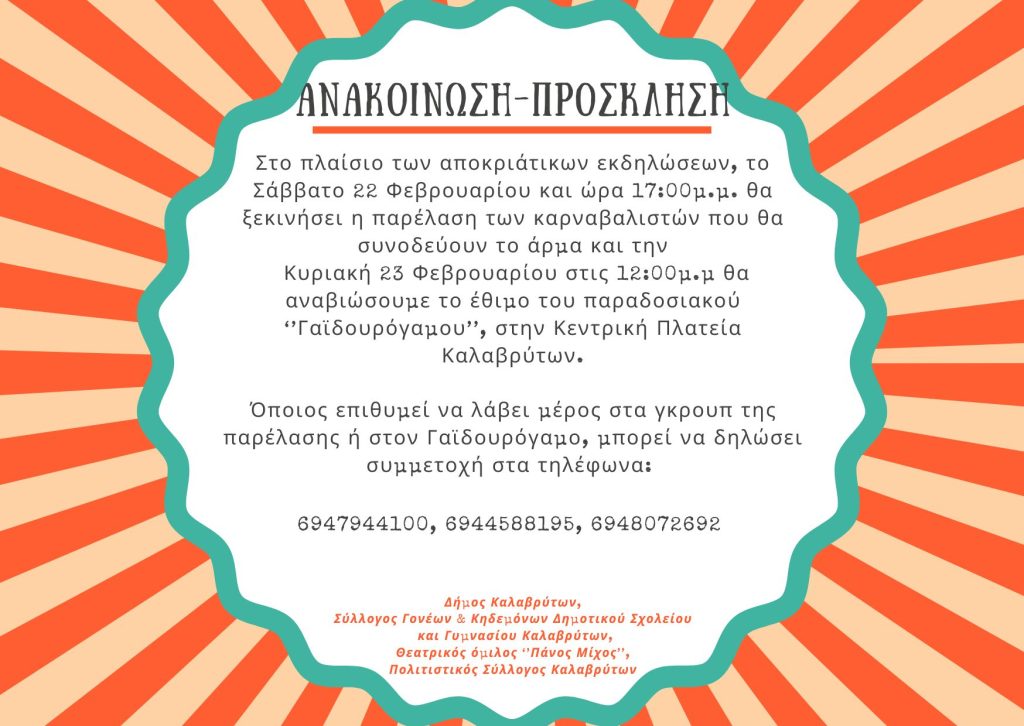 Home»Καλάβρυτα»ΔΗΜΟΣ ΚΑΛΑΒΡΥΤΩΝ»ΚΑΛΑΒΡΥΤΑ: ΑΠΟΚΡΙΕΣ 2025.