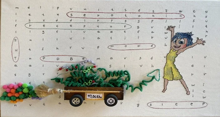 Χρησιμοποίησαν διάφορες τεχνικές για το έργο τους στο οποίο αναπαράστησαν την τρισδιάστατη δομή της πρωτεΐνης με μεγάλη ακρίβεια και την συνδύασαν με τη «Χαρά» από την ταινία «Τα μυαλά που κουβαλάς».