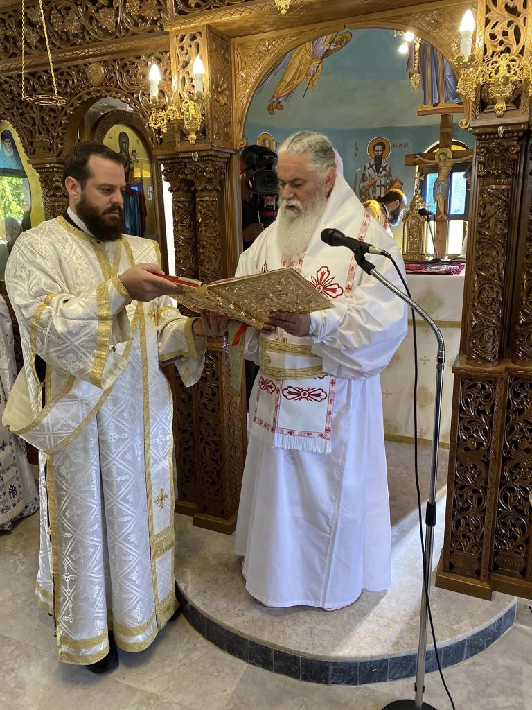Μετά την Ακολουθία του Όρθρου πραγματοποίθηκε η τελετή των Εγκαινίων και ακολούθησε η Θεία Λειτουργία προεξάρχοντος του Σεπτού Μητροπολίτη, Καλαβρύτων και Αιγιαλείας Σεβασμιωτάτου κ.κ. Ιερωνύμου, με τη συνοδεία ιερέων της Μητροπόλεως, ο οποίος στην ομιλία του, εξήρε την αγαστή και ανιδιοτελή προσπάθεια που ξεκίνησε από το 2021, της οικογένειας Ανδριόπουλου για την ανέγερση και ολοκλήρωση του Ιερού Ναού Αγίου Παϊσίου του Αγιορείτου, στο βίο του Αγίου και στο πέρασμά του από την Ιερά Μονή Αγίων Θεοδώρων Αροανίας. Ο Σεβασμιότατος Μητροπολίτης αναφέρθηκε επίσης στην πρόσφατη αγιοποίηση του Αγίου Χριστοφόρου Παπουλάκου, από τον Άρμπουνα Καλαβρύτων.