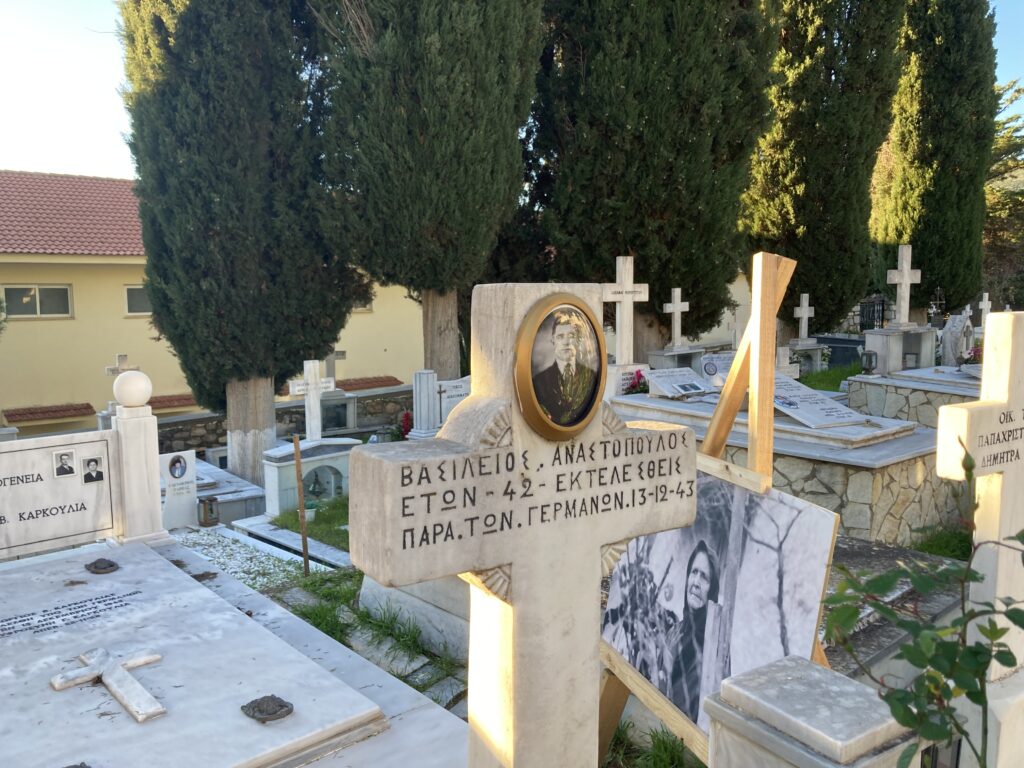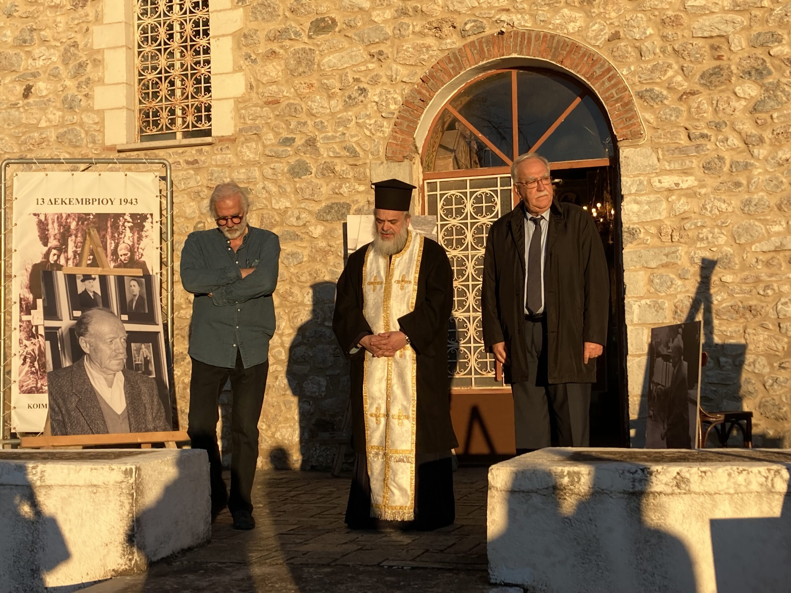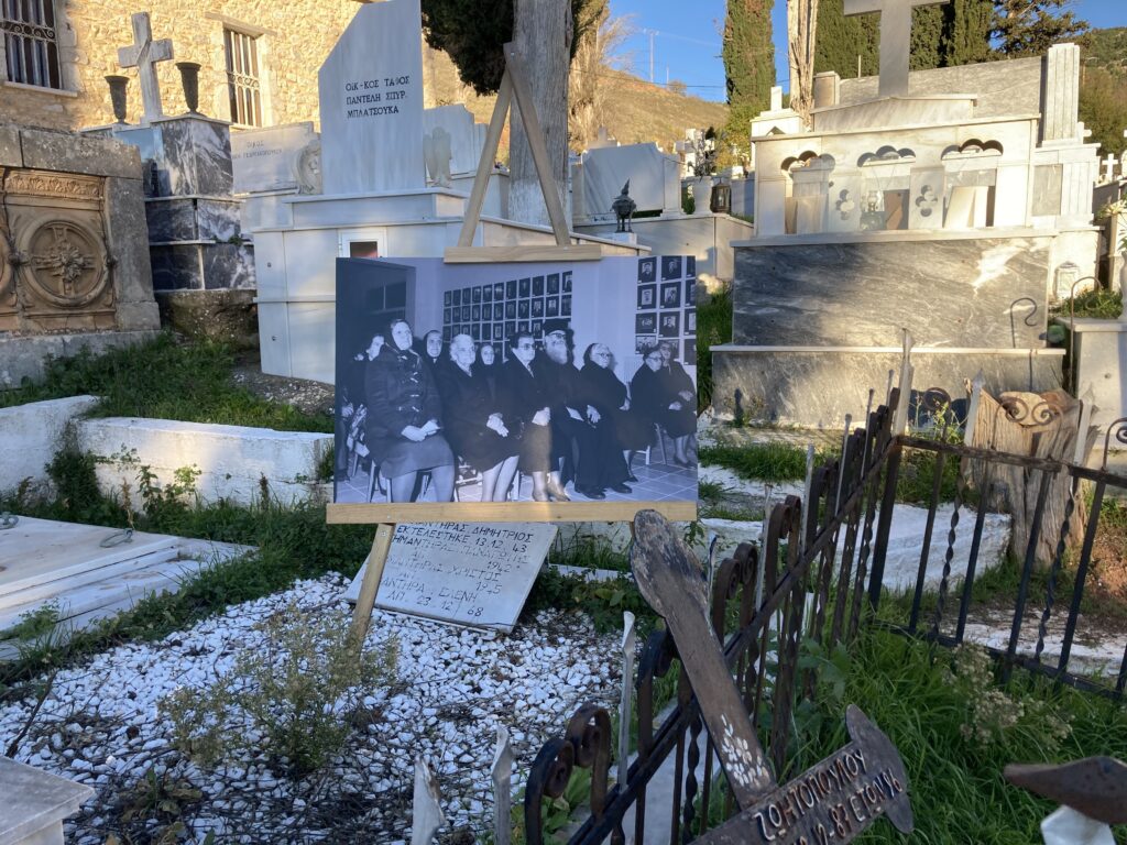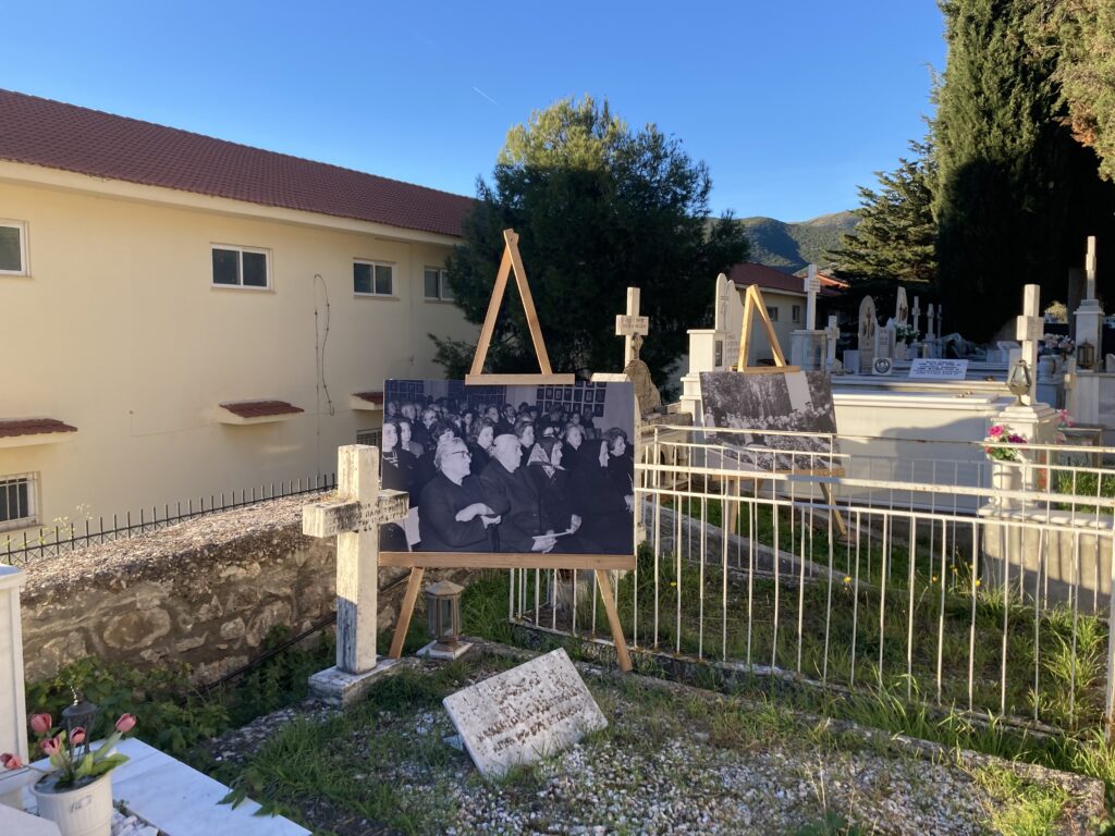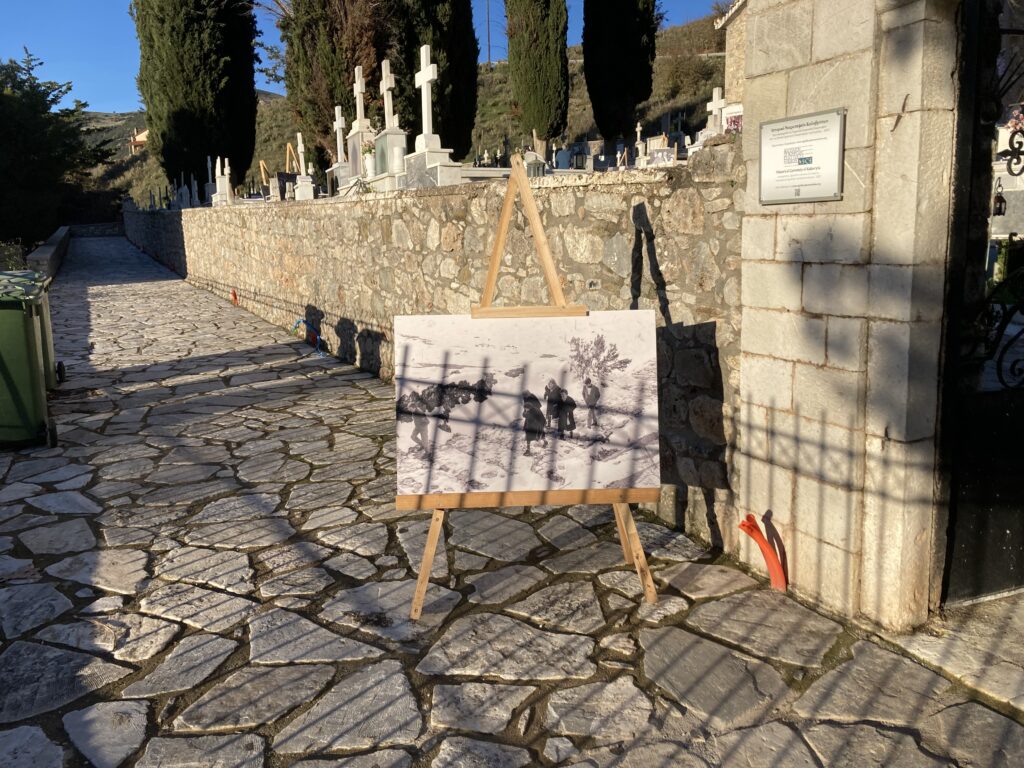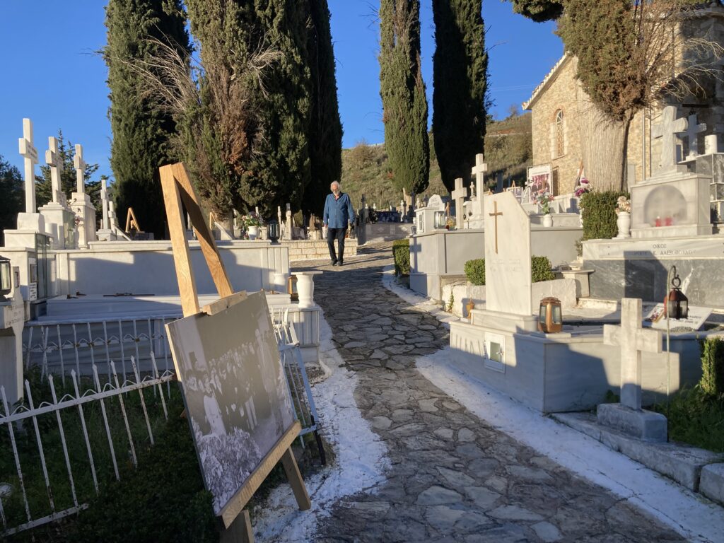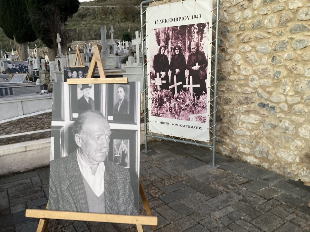 Οι φωτογραφίες ήταν τοποθετημένες σε τάφους εκτελεσθέντων την αποφράδα ημέρα της 13ης Δεκεμβρίου 1943 και των διασωθέντων μπροστά από της είσοδο του παρεκκλησίου των Αγίων Πάντων στο ιστορικό Κοιμητήριο Καλαβρύτων.