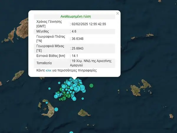 Νέος σεισμός 4,6 Ρίχτερ μεταξύ Σαντορίνης και Αμοργού. Ο ισχυρότερος των τελευταίων ωρών.
