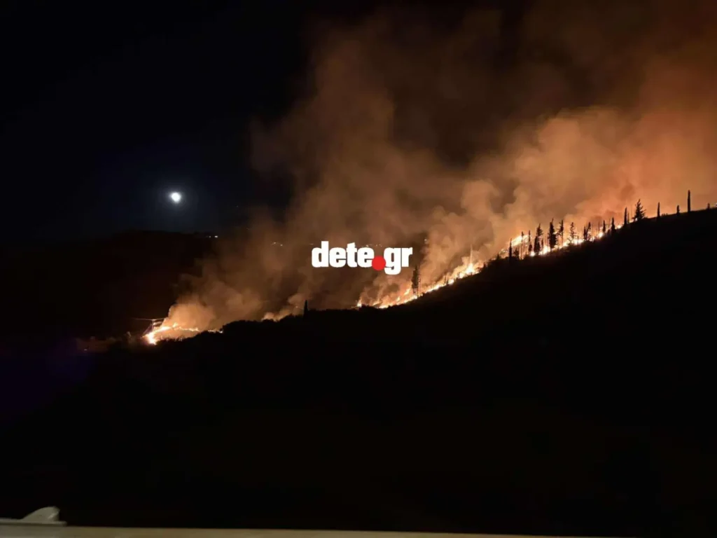 02. 40. Καίγονται σπίτια από την φωτιά στην περιοχή των Άνω Συχαινών, με τις φλόγες να είναι έχουν φτάσει κοντά στο Ολύμπιον.