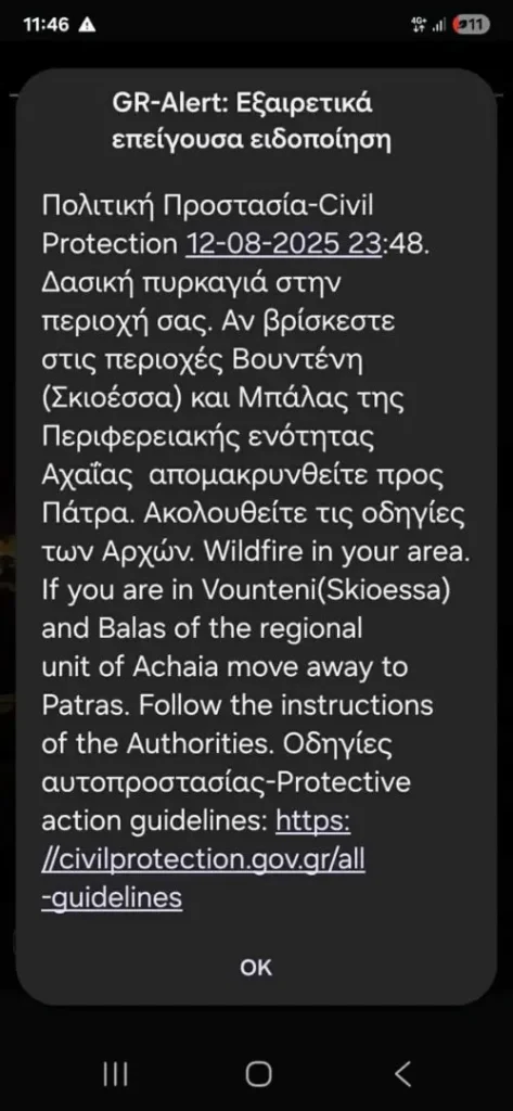 Μάλιστα στάλθηκε και μήνυμα σχετικό από το 112.