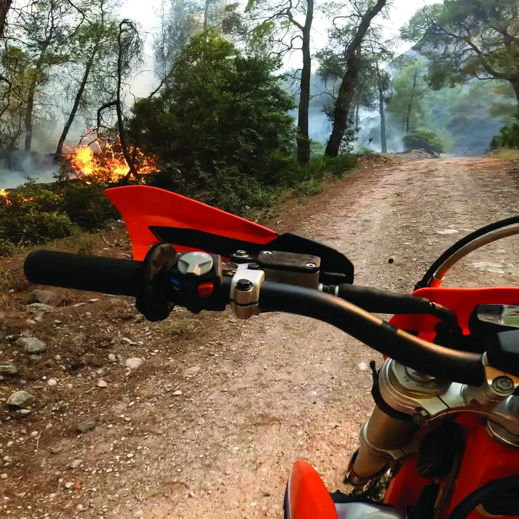 Όλα ξεκίνησαν κατά τη διάρκεια μιας προπόνησης μεταξύ φίλων για αγώνα μηχανών enduro. Την ώρα που γινόταν η προπόνηση εντελώς συγκυριακά παρατήρησαν ότι σε ένα κορμό δέντρου κάποιος είχε βάλει φωτιά.