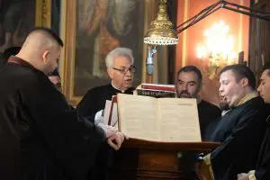 Μετά ταῦτα οἱ χοροί τῶν Ἱεροψαλτῶν ἒψαλαν τόν πολυχρονισμό τοῦ Παναγιωτάτου καί Οἰκουμενικοῦ Πατριάρχου.