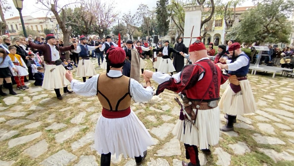 Ἡ ἀναπαράσταση τοῦ ἱστορικοῦ αὐτοῦ γεγονότος ἒγινε ἀπό τόν Πατριωτικό Σύλλογο «Μωραΐτες ἐν Χορῷ», οἱ ὁποῖοι μέ φλόγα ψυχῆς καί μέ τίς εὐλογίες τοῦ Σεβασμιωτάτου Μητροπολίτου Πατρῶν κ.κ. Χρυσοστόμου, μᾶς μετέφεραν στίς ἡρωικές ἐκεῖνες ἡμέρες, πού ὃλοι ἑνωμένοι Κλῆρος καί Λαός, ὃπως ἐτόνισε χαρακτηριστικά στήν Πνύκα ὁ Θεόδωρος Κολοκοτρώνης, ἀγωνίζονταν γιά τά ἱερά καί τά ὃσια τοῦ Γένους καί χάρισαν σέ μᾶς τήν ἐλευθερία.