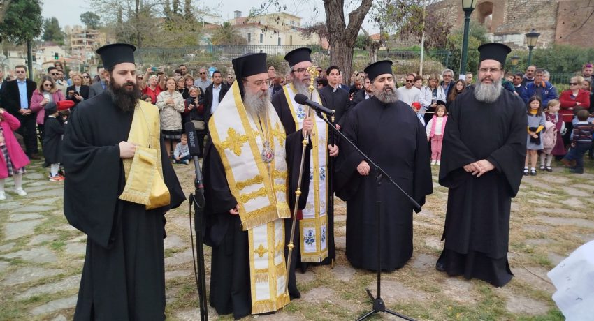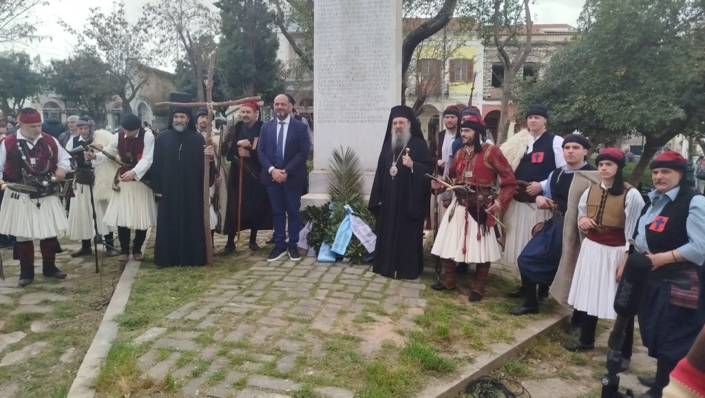Στήν ὁμιλία του ὁ Σεβασμιώτατος, ἀνεφέρθη στούς ἀγῶνες τῶν Πατέρων μας, ὑπέρ Πίστεως καί Πατρίδος, στούς ἡρωισμούς τῆς φουστανέλλας καί τοῦ ράσου καί στήν μεγάλη προσωπικότητα τοῦ Παλαιῶν Πατρῶν Γερμανοῦ, ὁ ὁποῖος ἀπό τήν πλατεία Ἁγίου Γεωργίου τῶν Πατρῶν, μέ τό περίφημο ἐπαναστατικό μανιφέστο, τήν περιβόητη ἐκείνη διακήρυξη, ἀπευθυνόμενος πρός τίς χριστιανικές δυνάμεις τῆς Εὐρώπης, μίλησε γιά τά δίκαια τοῦ ἀγῶνος καί τούς κάλεσε νά ὑπερασπισθοῦν τήν αἱματηρή αὐτή προσπάθεια καί νά στηρίξουν τόν ἀγῶνα τῆς Ἑλλάδος γιά τήν ἐλευθερία της, ἀφοῦ αὐτή ἒδωσε τά φῶτα τοῦ πολιτισμοῦ στόν κόσμο. «Ὁ Παλαιῶν Πατρῶν Γερμανός μᾶς ἐμπνέει καί μᾶς ὁδηγεῖ», ἐτόνισε ὁ Σεβασμιώτατος.