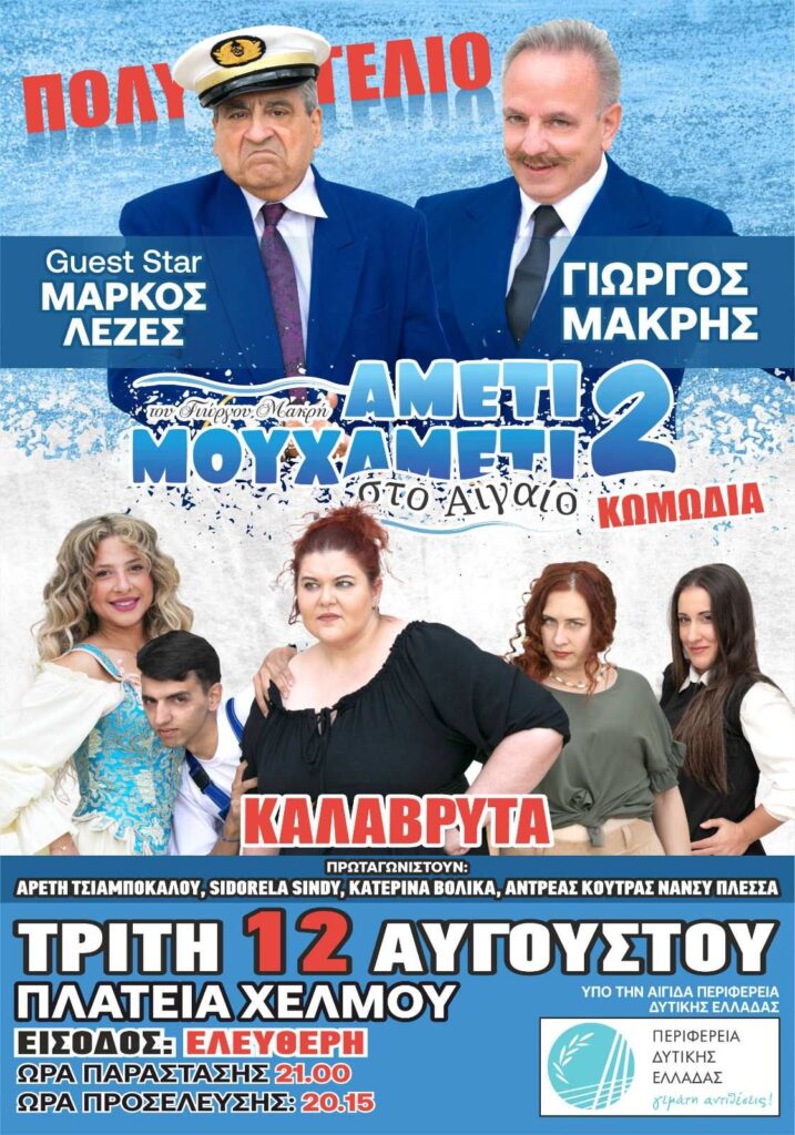 Home»Καλάβρυτα»Πολιτιστικό Καλοκαίρι 2025, Τρίτη 12 Αυγούστου, Πλατεία Χελμού