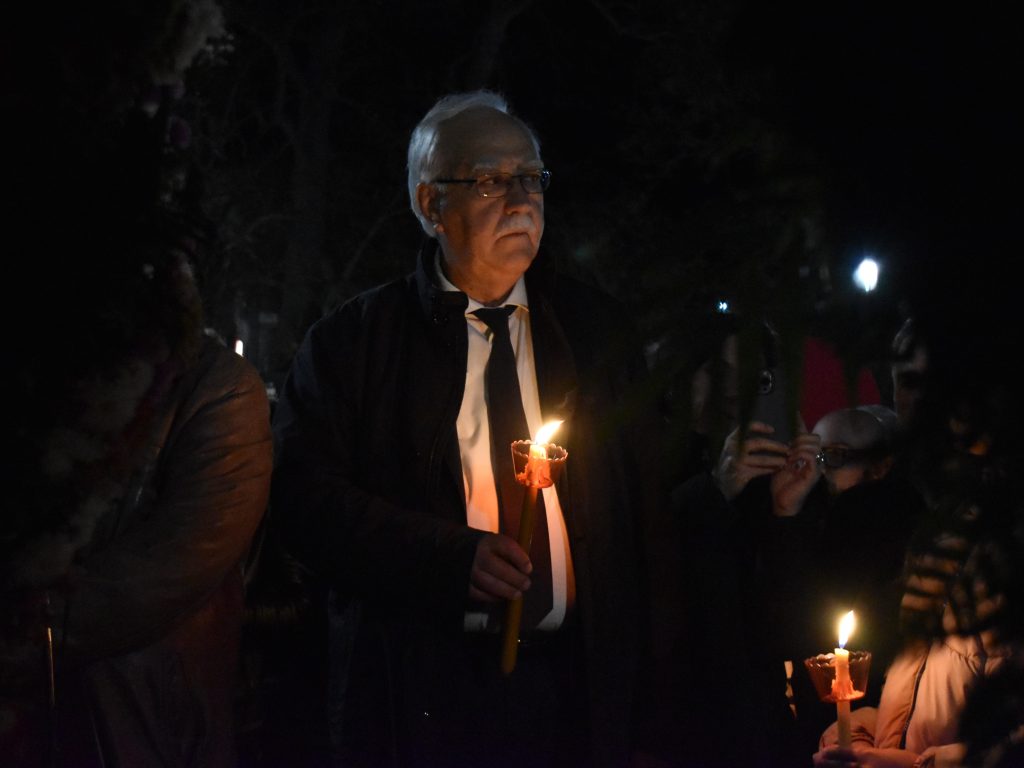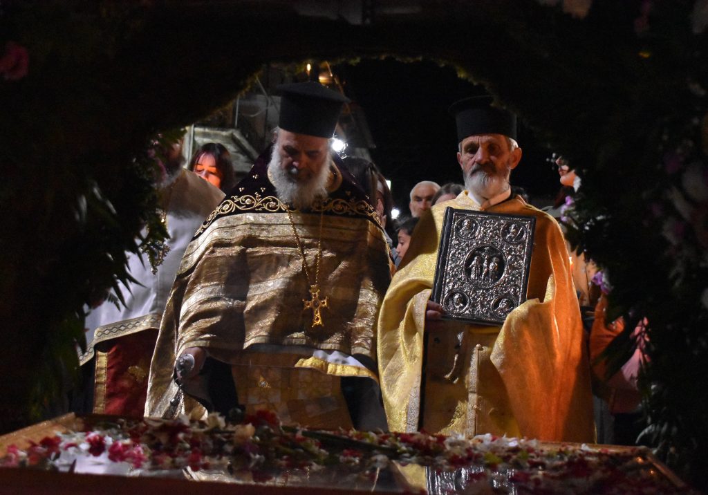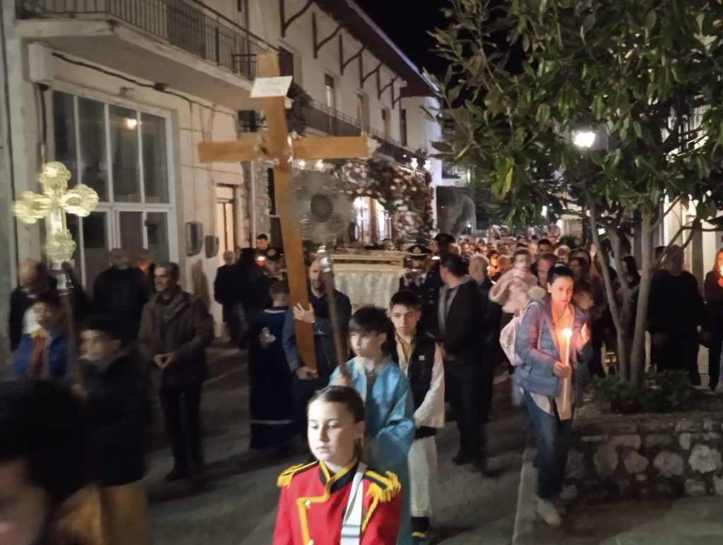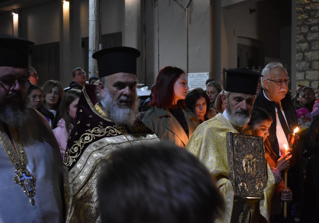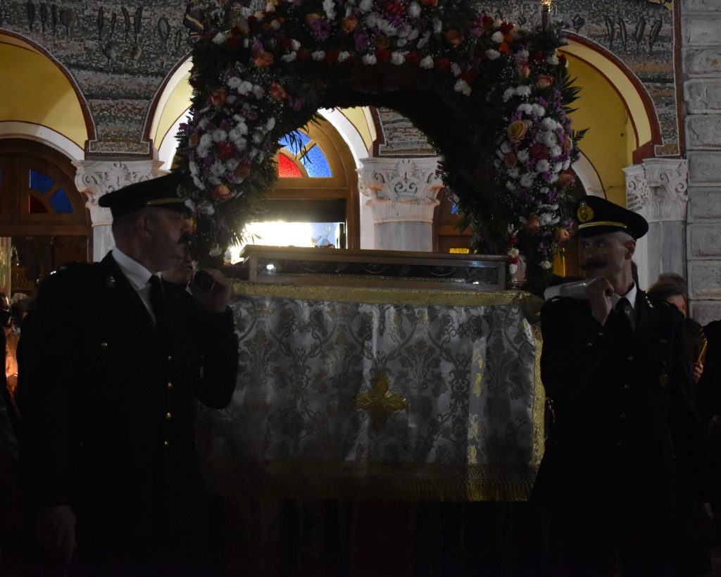 Με το πέρας της περιφοράς του Επιταφίου, στο μήνυμά του ο Προϊστάμενος του Ναού Πρωτοπρεσβύτερος Κωνσταντίνος Μητρόπουλος αναφέρθηκε στην ταπείνωση του Θεανθρώπου, την Ανάσταση του αλλά και την κρίση του αξιακού συστήματος  το οποίο βιώνουμε, το τόσο επιφανειακό και επίπλαστο, ευχόμενος σε όλες και όλους Καλή Ανάσταση.