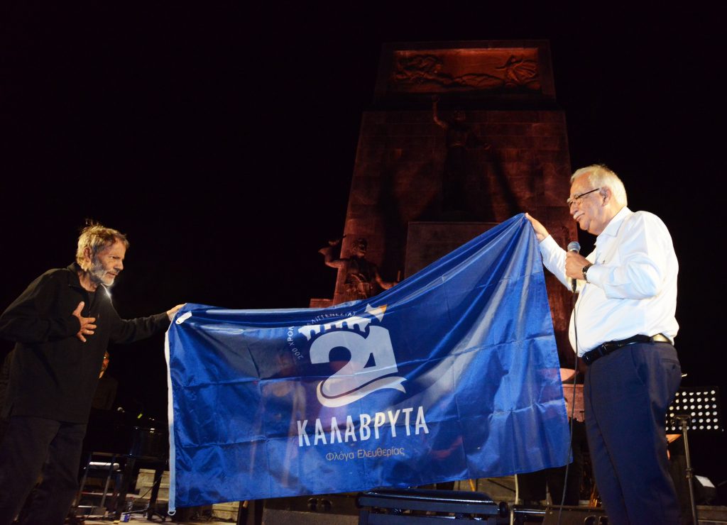 Νωρίτερα ο Δήμαρχος Καλαβρύτων καλωσορίζοντας τον Σταύρο Ξαρχάκο είχε επισημάνει ότι «ο Ξαρχάκος με την μουσική του εξυμνεί τον άνθρωπο. Εξυμνεί με το έργο του την Ελευθερία. Μας θυμίζει -κάθε φορά που ο ήχος από ένα τραγούδι του φτάνει στα αυτιά μας ή περνά απ’ τα χείλη μας- ότι αυτή η χώρα κι αυτός ο λαός όσα δεινά κι αν περάσουν δεν πρόκειται να λυγίσουν».