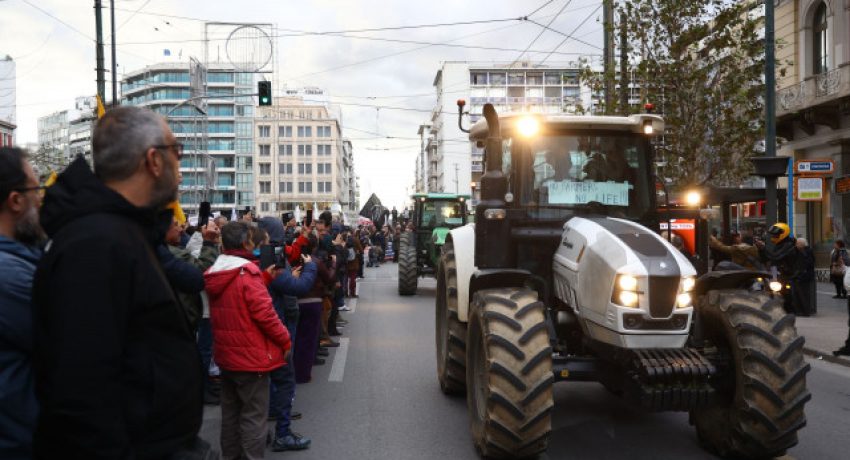 Οι αγρότες με τα τρακτέρ έφτασαν στο Σύνταγμα για να συμμετέχουν στο συλλαλητήριο.