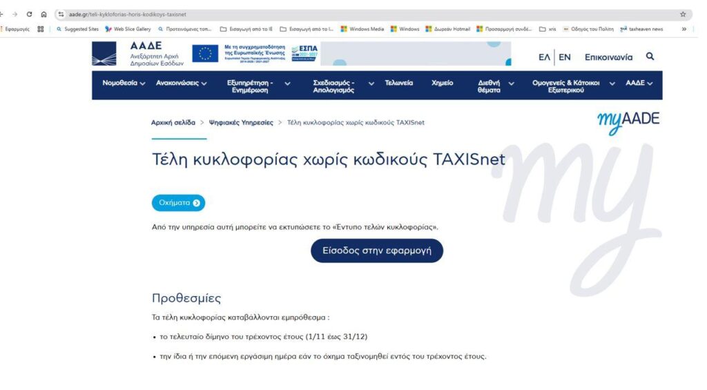 Οι ιδιοκτήτες οχημάτων μπορούν να μπουν στην ΑΑΔΕ στην εφαρμογή «Τέλη κυκλοφορίας χωρίς κωδικούς».