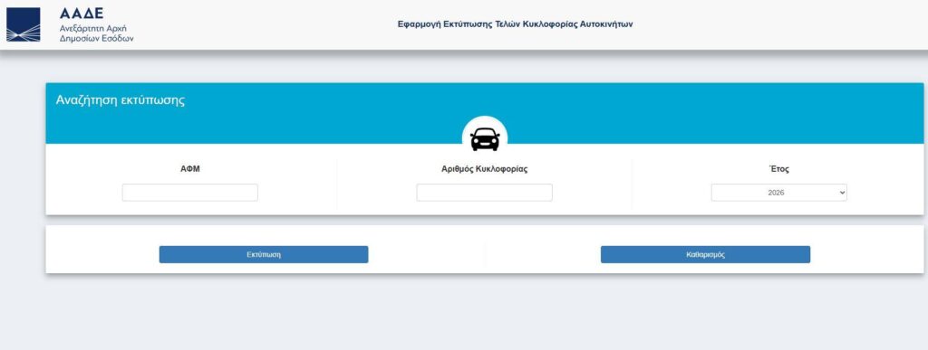 Κατόπιν οι ιδιοκτήτες από την υπηρεσία αυτή μπορούν να εκτυπώσουν το «Έντυπο τελών κυκλοφορίας».
