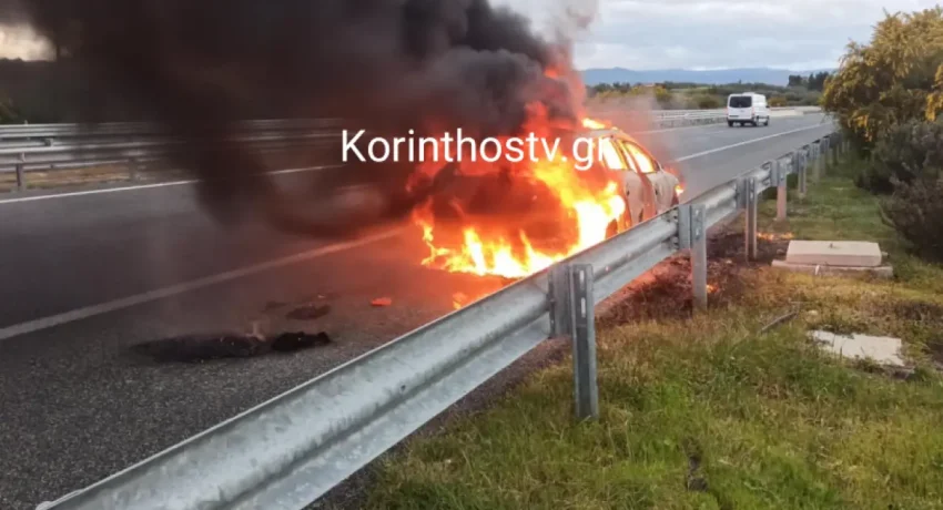 Στις φλόγες τυλίχθηκε ένα αυτοκίνητο ανήμερα της 25ης Μαρτίου, στο 97ο χιλιόμετρο του αυτοκινητόδρομου Κορίνθου – Πατρών, στο ρεύμα κυκλοφορίας προς Πάτρα.