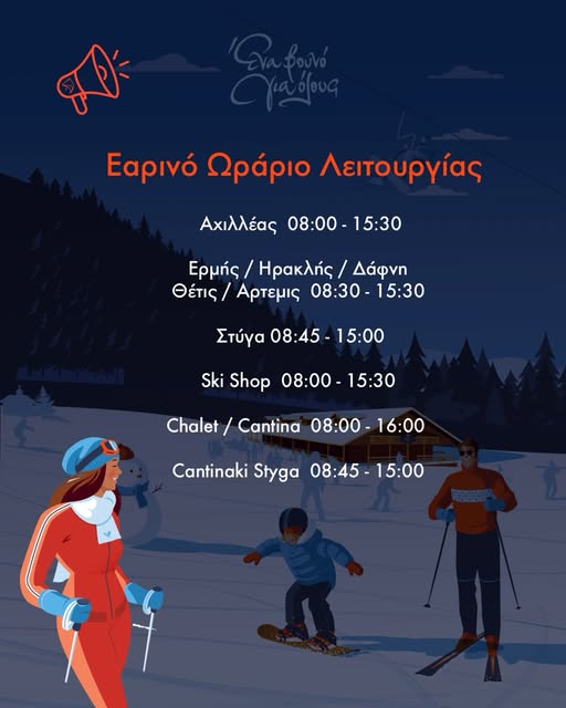 Χιονοδρομικό Κέντρο Καλαβρύτων: Εαρινό Ωράριο Λειτουργίας