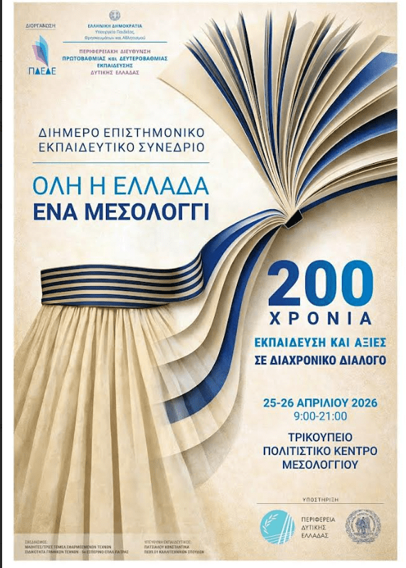 Οι εργασίες θα διεξαχθούν το διήμερο 25 και 26 Απριλίου 2026, στο Τρικούπειο Πολιτιστικό Κέντρο Μεσολογγίου κατά τις ώρες 09.00 – 21.00.