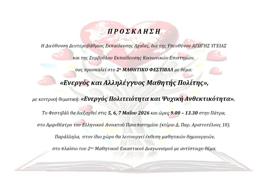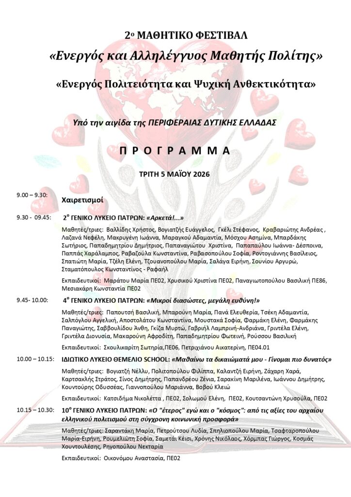 Home»ΕΚΠΑΙΔΕΥΣΗ» 2ο ΜΑΘΗΤΙΚΟ ΦΕΣΤΙΒΑΛ με θέμα: «Ενεργός και Αλληλέγγυος Μαθητής Πολίτης»