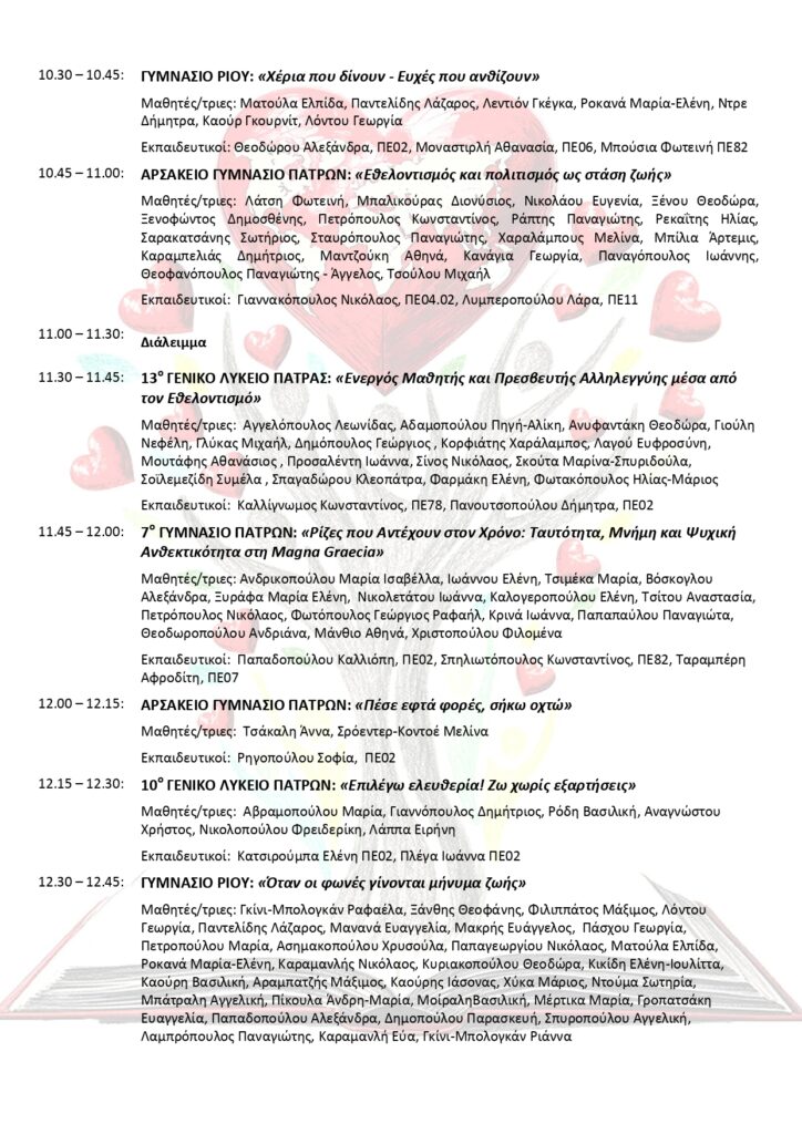 Oμιλία του Άγγελου Τσιγκρή για τη σχολική βία στο ΕΠΑΛ Παραλίας Πατρών